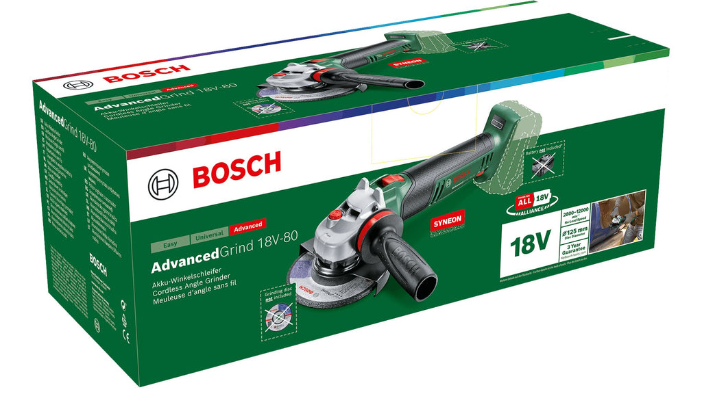 Bosch Advanced Grind 18V-80, 12000 RPM, 12,5 cm, Batería, 4 Ah, 1,7 kg, Motor sin escobillas