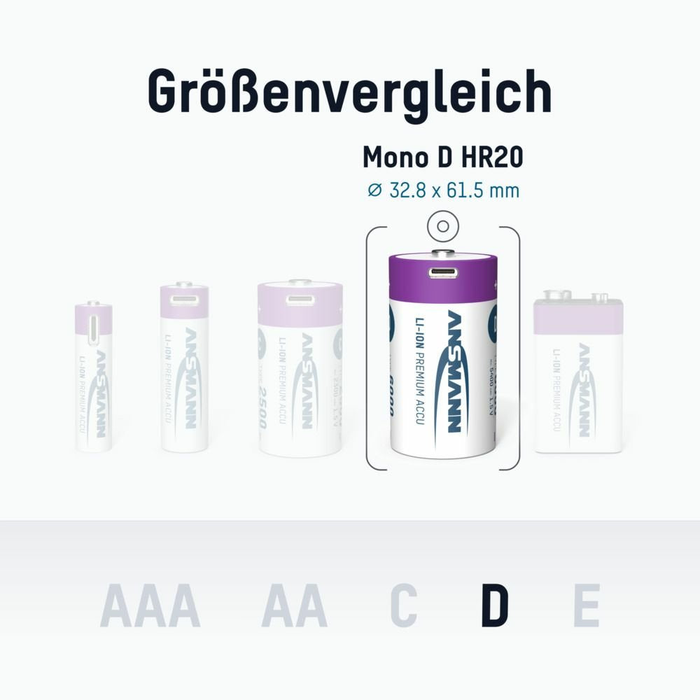 Ansmann 1314-0005, Batería recargable, D, Ión de litio, 1,5 V, 2 pieza(s), 6000 mAh