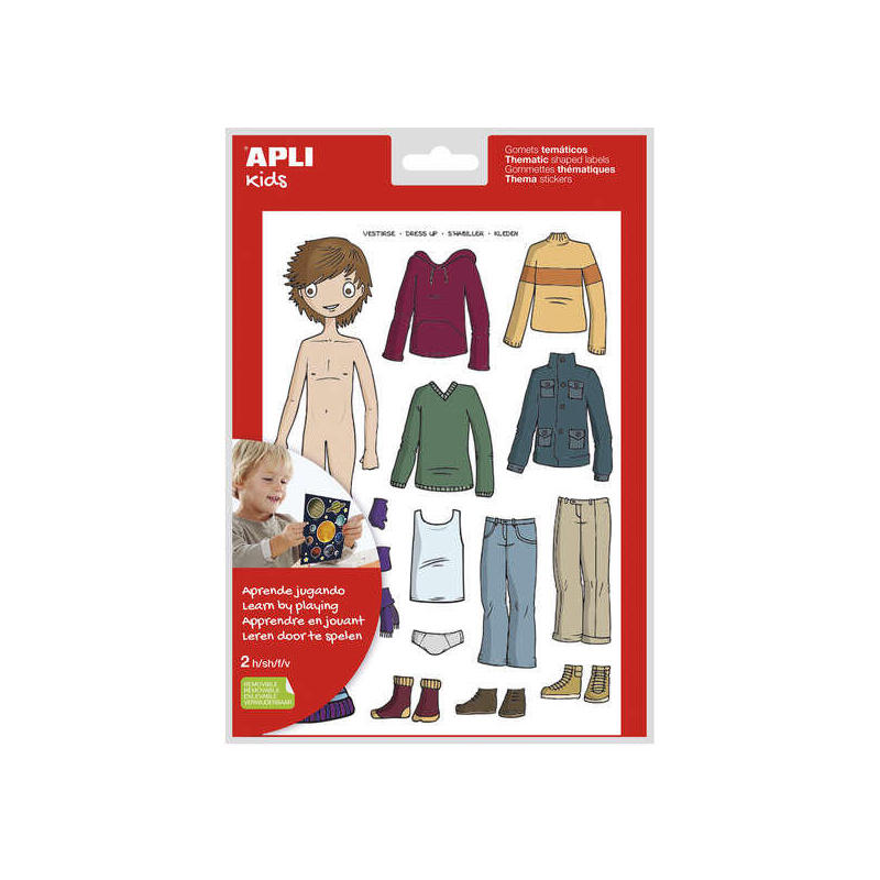 Apli Bolsa De Gomets Tematicos Vestirse Niã±O - 35 Gomets - Adhesivo Removible - Desarrollados Con Educadores - Normas
