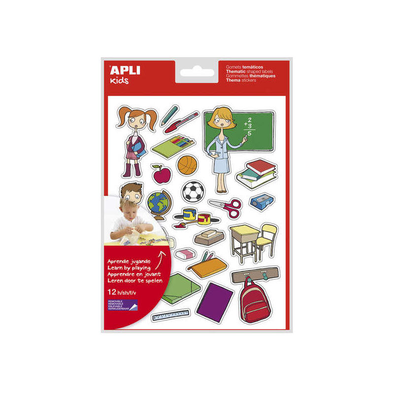 Apli Gomets Tematicos La Escuela - 312 Unidades - Adhesivo Removible - Ilustraciones Educativas - Formato Ideal Para