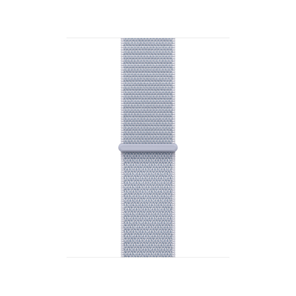 La correa Loop deportiva es suave, ligera y transpirable, y viene con un cierre adhesivo ajustable. El tejido de nailon de doble capa presenta un acolchado suave en el lado que está en contacto con la piel para que no se acumule el sudor. El tejido está hecho con un 82 % de hilos reciclados, algunos de los cuales contienen material procedente de redes de pesca desechadas.