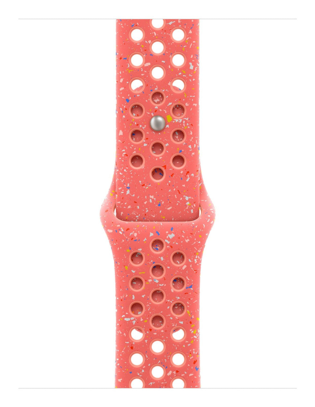 La correa Nike Sport es resistente y suave a la vez. Además, es transpirable gracias a sus perforaciones hechas por compresión. Incluye fragmentos de distintos colores que se combinan de forma aleatoria para crear un diseño jaspeado único. Este material es flexible, agradable al tacto y se adapta con elegancia a tu muñeca. Su nuevo cierre de clip de aluminio da al pasador un elegante acabado mate.