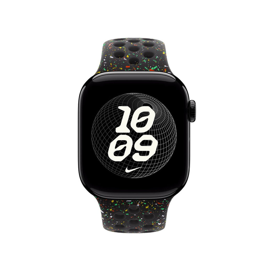 La correa Nike Sport es resistente y suave a la vez, además de transpirable gracias a sus perforaciones hechas por compresión. Incluye fragmentos de distintos colores que se combinan de forma aleatoria para crear un diseño único. Está hecha de un material flexible y agradable al tacto que se adapta con elegancia a la forma de tu muñeca. Su cierre de clip de aluminio está grabado con el logotipo de Nike y le da al pasador un elegante acabado mate.