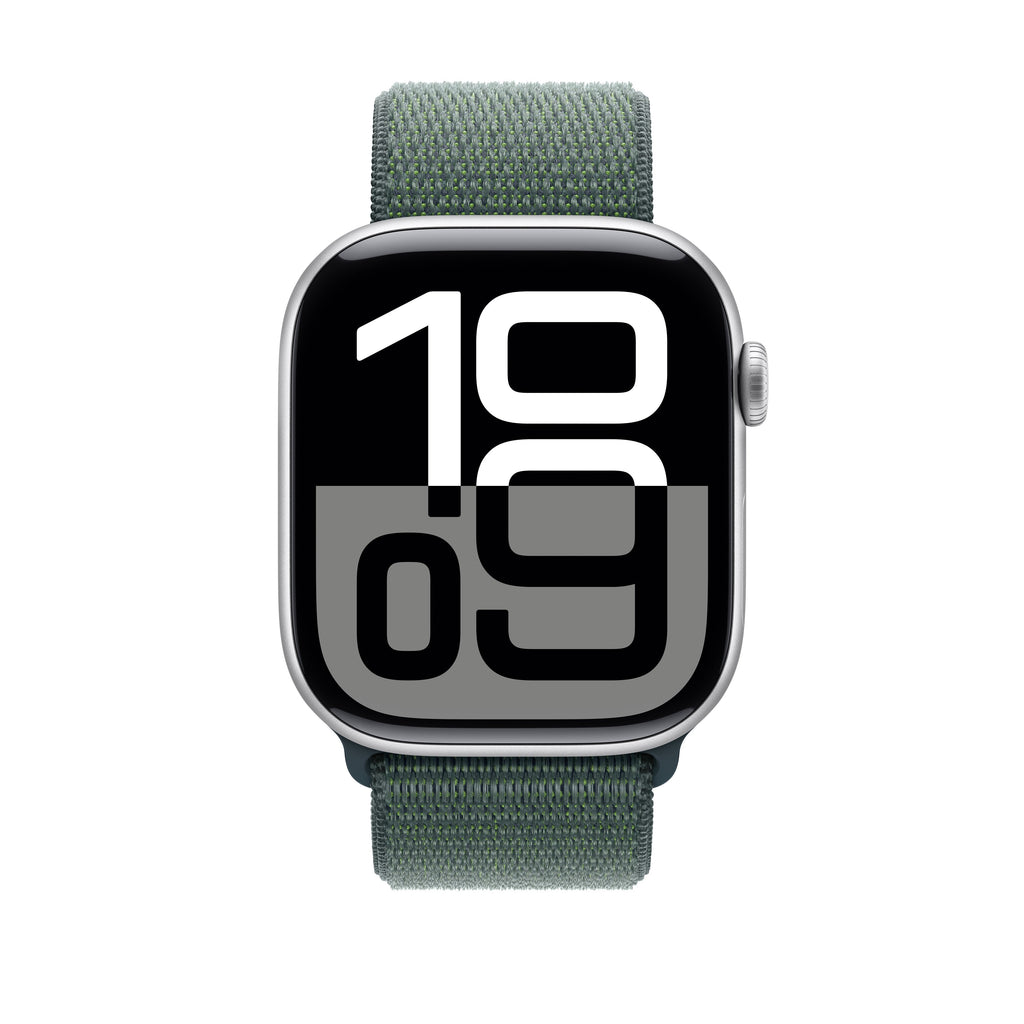 La correa Loop deportiva es suave, ligera y transpirable, y viene con un cierre adhesivo ajustable. El tejido de nailon de doble capa presenta un acolchado suave en el lado que está en contacto con la piel para que no se acumule el sudor. El tejido está hecho con un 82 % de hilos reciclados, algunos de los cuales contienen material procedente de redes de pesca desechadas.