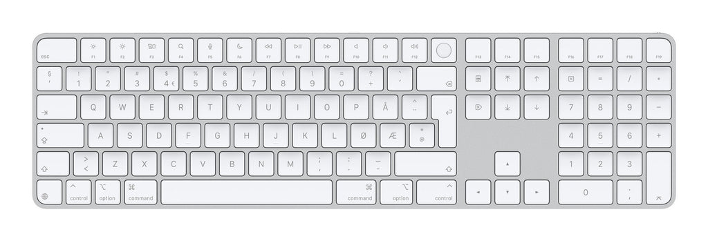 El Magic Keyboard con Touch ID y teclado numérico te permite escribir con total precisión y comodidad. Tiene un diseño ampliado, con controles de navegación para recorrer los documentos fácilmente y teclas de flecha de tamaño estándar que son una gozada para tus partidas. Su teclado numérico es perfecto para hojas de cálculo y aplicaciones financieras. Es inalámbrico e integra una batería recargable de gran autonomía, así podrás olvidarte de cargarlo durante un mes o más. Se enlaza de forma automática al Mac para que puedas usarlo enseguida.