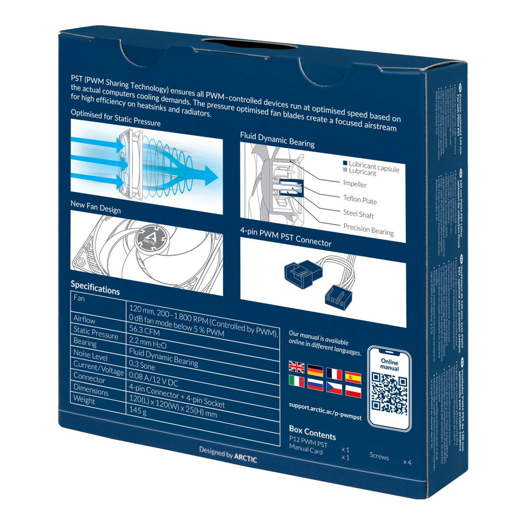 ARCTIC P12 PWM PST, Ventilador, 12 cm, 200 RPM, 1800 RPM, 0,3 sonio, 95,65 m³/h