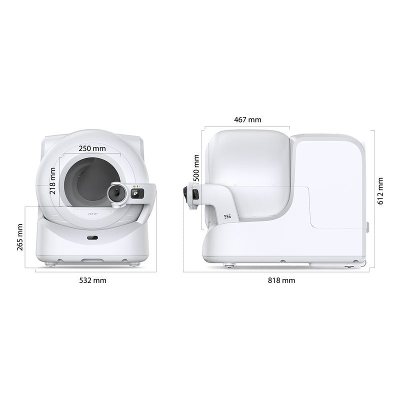 PETKIT P9903, Gato, Arenero con limpieza automática, Blanco, Acrilonitrilo butadieno estireno (ABS), Polipropileno (PP), Silicona, Elastómero termoplástico (TPE), IPX5, 532 mm