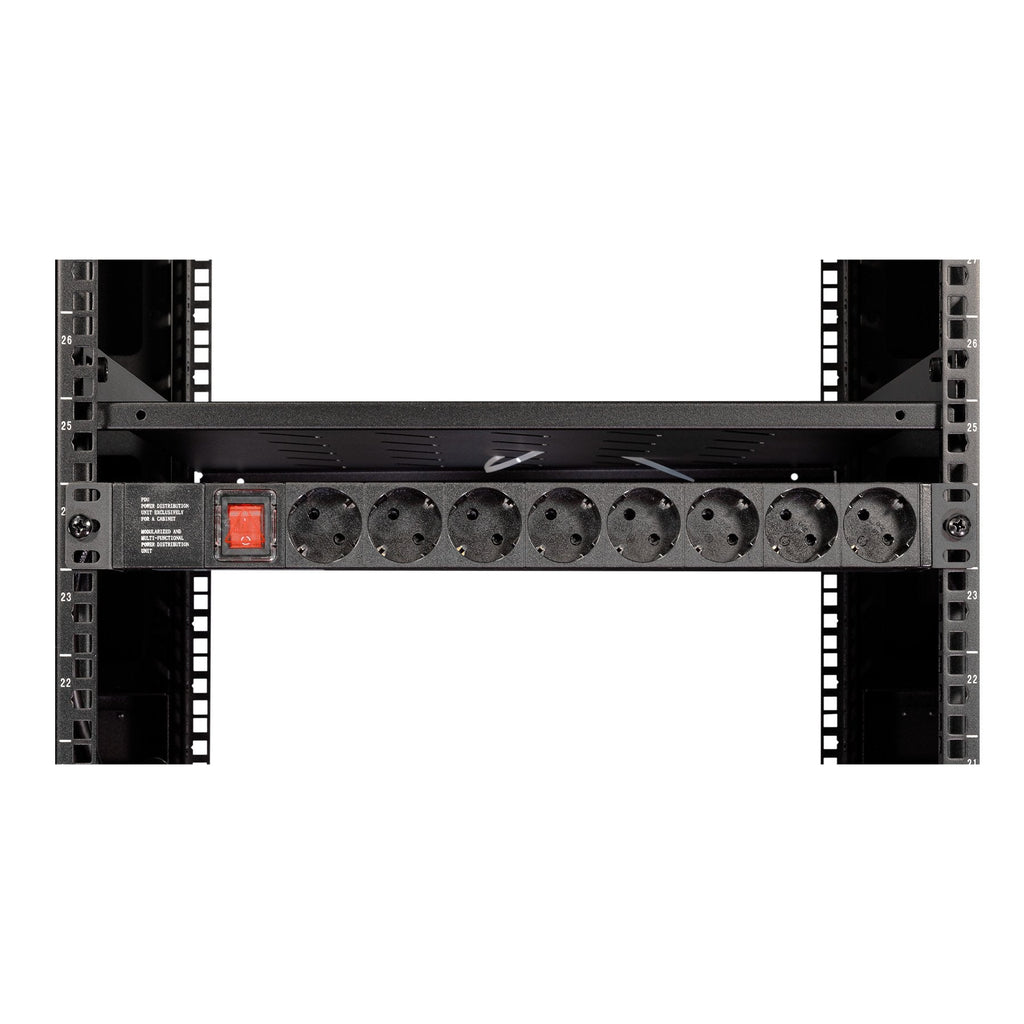 - Armario rack de suelo con ancho estándar de 19” (482,6 mm).