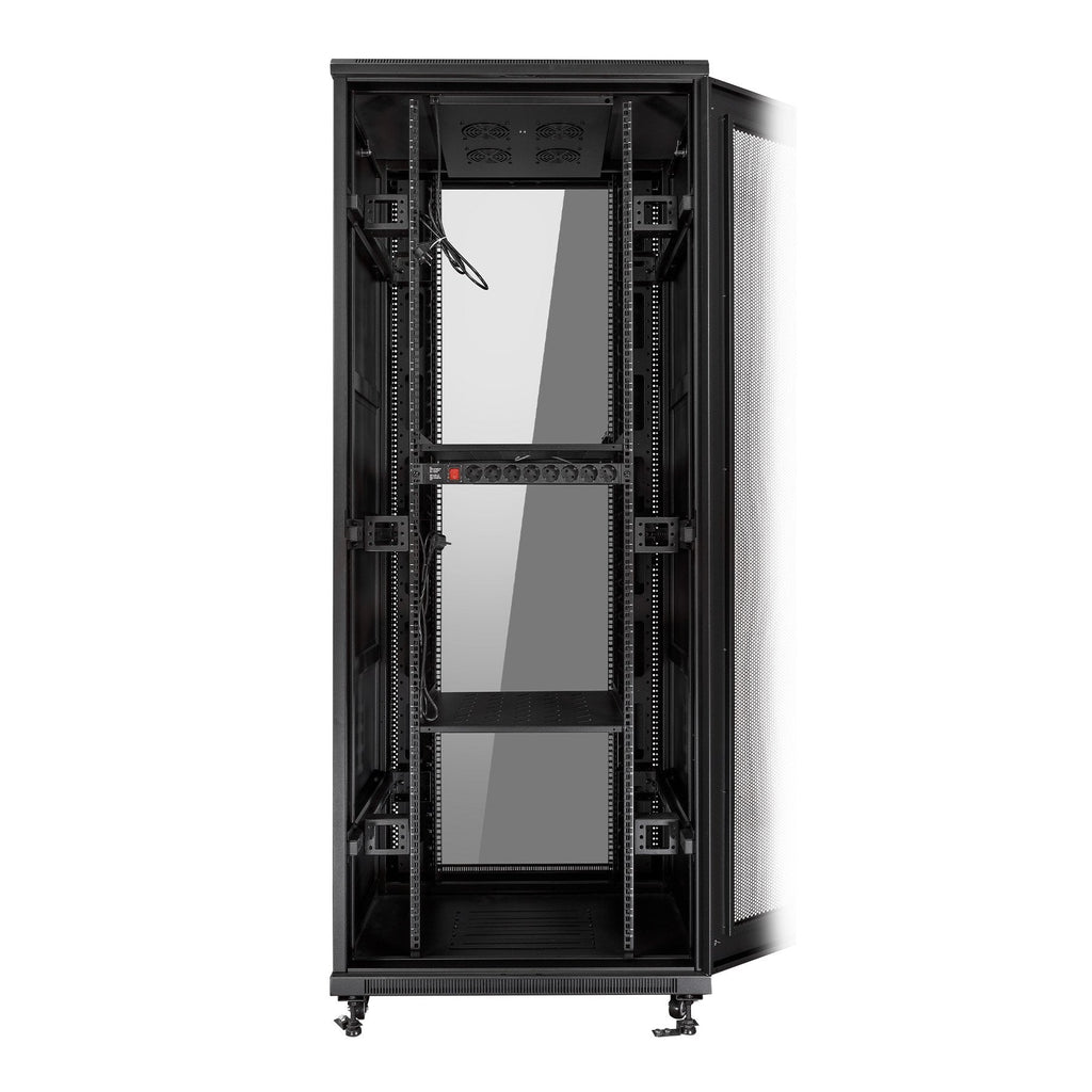 Distintas alturas y capacidades que van desde 22U a 47U, con anchos de entre 600 mm a 800 mm y fondos entre 600 mm a 1000 mm. Todos los armarios poseen puertas de cristal, perforadas o, en el caso de los armarios más grandes, existe la opción de doble puerta, lo que permite trabajar en una parte del mueble mientras la otra parte está cerrada y protegida.