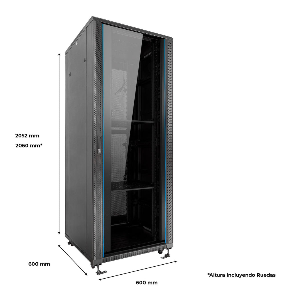 - Armario rack de suelo con ancho estándar de 19” (482,6 mm).