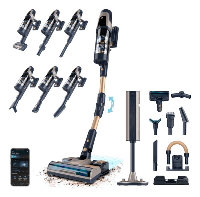 Cecotec Conga Rockstar 11500 Odyssey Station Connected IA Aspiradora escoba 2 en 1 Batería Secar HEPA Sin bolsa 1,7 L 850 W Negro 5000 Ah