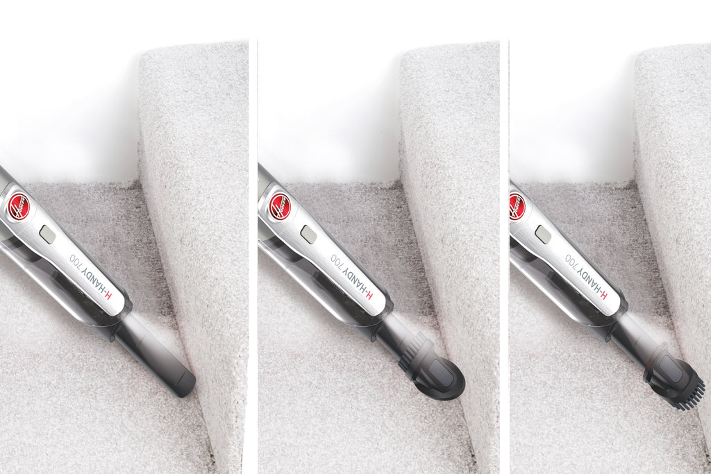 Incluyendo un cepillo para la limpieza del polvo sobre superficies duras y un accesorio para los tejidos del hogar, el accesorio 3en1 es perfecto para aspirar rincones y zonas estrechas difíciles de alcanzar. También, se puede almacenar fácilmente junto con la H-HANDY 700 en su base de carga.