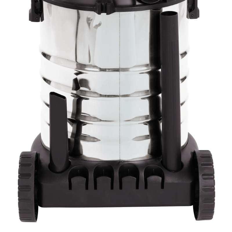 La aspiradora en seco y húmedo TC-VC 1930 SA es una ayuda indispensable para los ambiciosos entusiastas del bricolaje, que se adapta bien a las tareas de limpieza en el hogar, en el taller y en el coche. Su contenedor de acero inoxidable ofrece 30 litros de capacidad para la suciedad y los líquidos, que se pueden eliminar de forma rápida y cómoda con un tapón de drenaje de agua. También está disponible una práctica conexión de soplado. La toma de corriente integrada con función automática y retardo de desconexión permite su uso como sistema de succión para herramientas eléctricas. La TC-VC 1930 SA está equipada con una manguera de succión de 2,5 m de largo, un tubo de succión de plástico de tres piezas, una boquilla de succión grande con un inserto combinado para la aspiración en suelo húmedo / seco y una boquilla para ranuras. Al aspirar el polvo y las virutas, el filtro de pliegues hace un buen trabajo y en el caso de aspiración húmeda, un filtro de espuma protege el motor de la contaminación. Gracias al soporte del cable y de los accesorios, todas las piezas se pueden almacenar de forma rápida y ordenada directamente en el equipo. Un asa de transporte, dos ruedas grandes y dos ruedas giratorias aseguran el manejo cómodo y la movilidad del equipo.