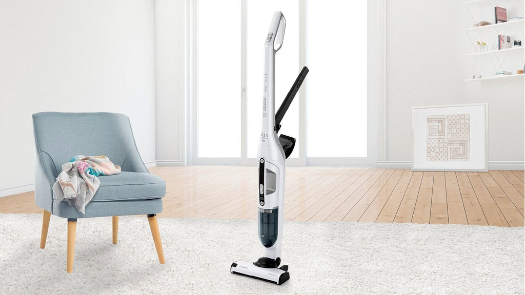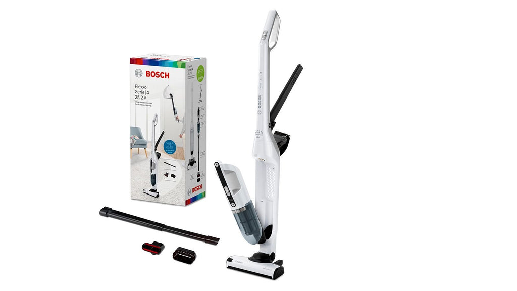 Bosch Serie 4 BBH32551 aspiradora de pie y escoba eléctrica Aspiradora escoba 2 en 1 Batería Secar Sin bolsa 0,4 L Metálico, Blanco
