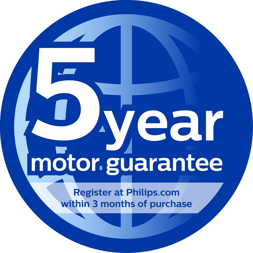 El motor de 900 W de alta eficiencia con más de 50 000 RPM genera una alta potencia de aspiración para obtener una limpieza profunda en todo momento. Regístrate en Philips.es en los 3 meses siguientes a la compra para disfrutar de una garantía de 5 años gratuita para el motor.