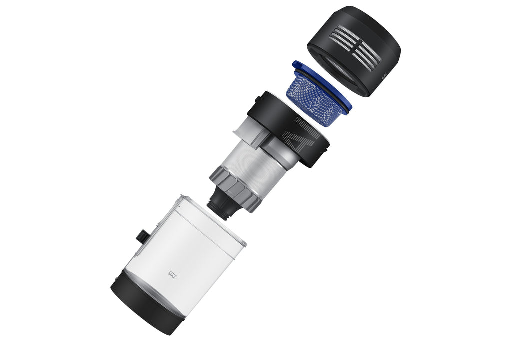 Tanto el depósito de polvo como el sistema multiciclón son resistentes al agua, por lo que puedes lavarlo sin preocupaciones. Además, puedes separar todas sus piezas para que sea mucho más fácil de limpiar.