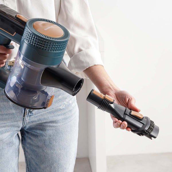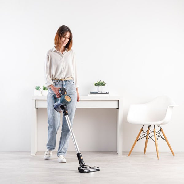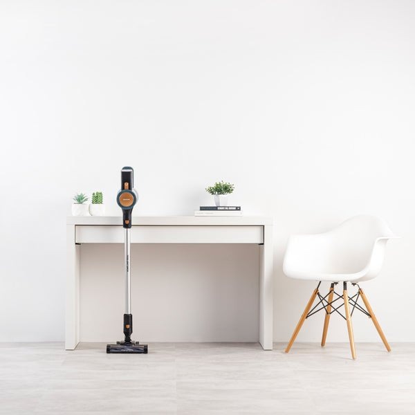 Su batería de 22.2V ofrece 20 minutos de autonomía en modo TURBO y hasta 40 minutos en ECO. Ligera y extraíble, se adapta a tus necesidades de limpieza diaria.