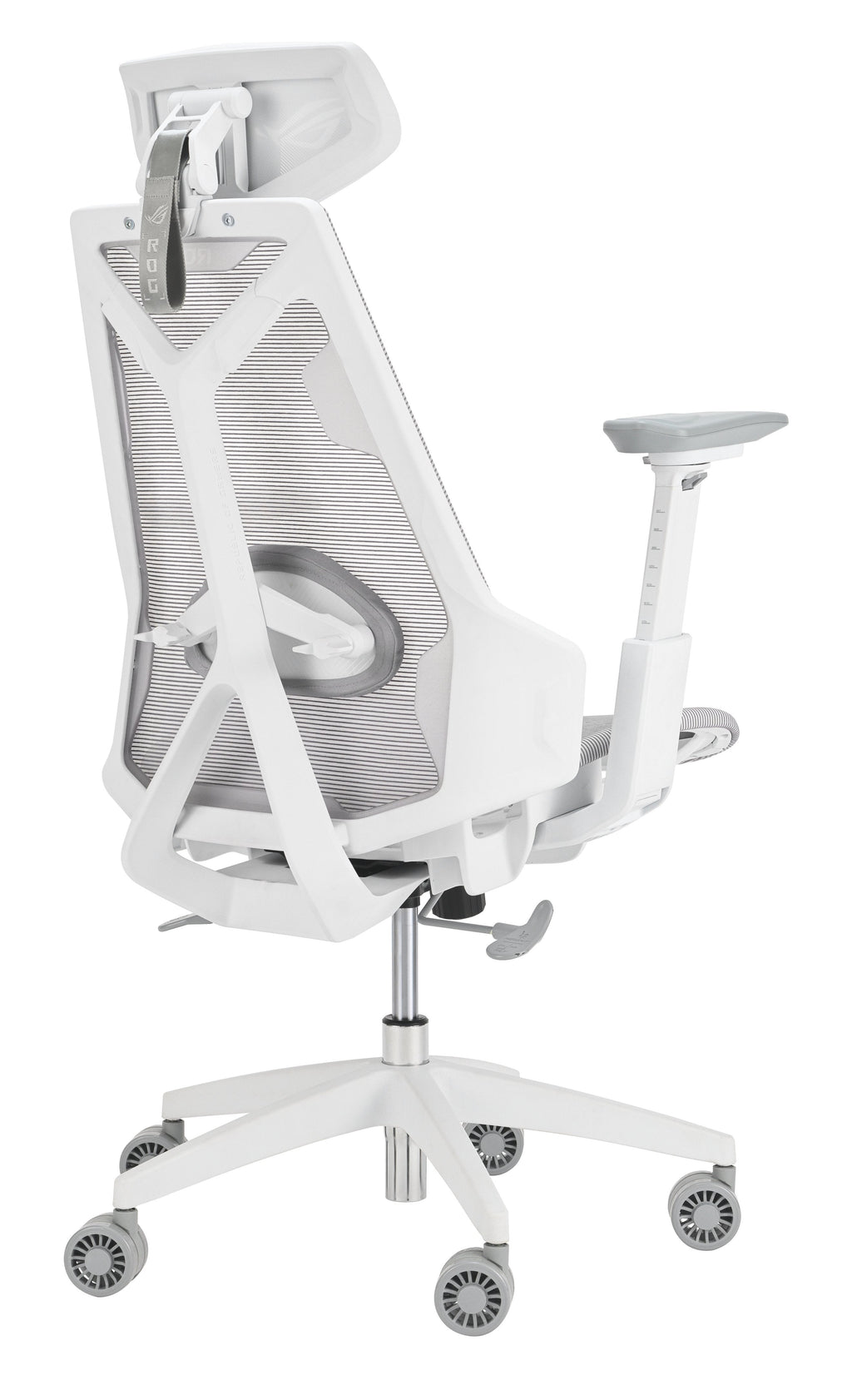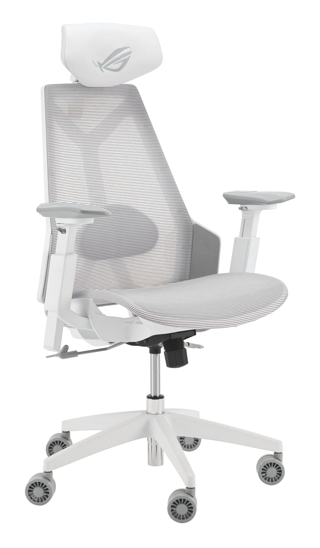 ASUS ROG Destrier Ergo Core White, Silla para videojuegos de PC, 136 kg, Asiento de malla, Respaldo de rejilla, Blanco, Metal