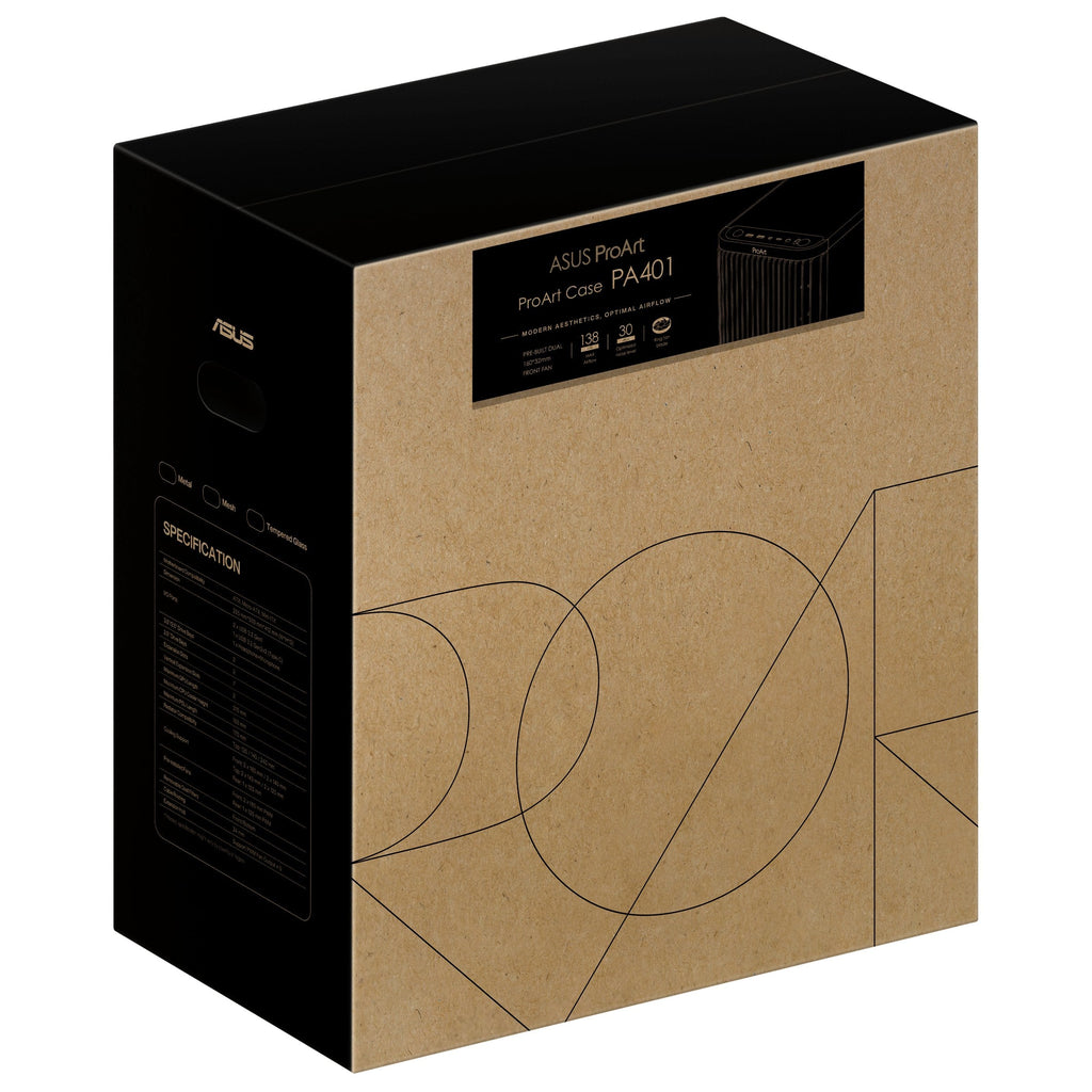 Diseñada para un flujo de aire óptimo y con un diseño organizado y eficiente, la ProArt PA401 es ideal para oficinas domésticas. Con dos ventiladores frontales de 160 mm preinstalados y un ventilador trasero de 120 mm, también ofrece un rendimiento térmico fiable. Además, esta carcasa está fabricada para facilitar la construcción del PC, e incluye un cierre del panel lateral izquierdo, un soporte para la fuente de alimentación desmontable y clips para cables integrados en la parte trasera.