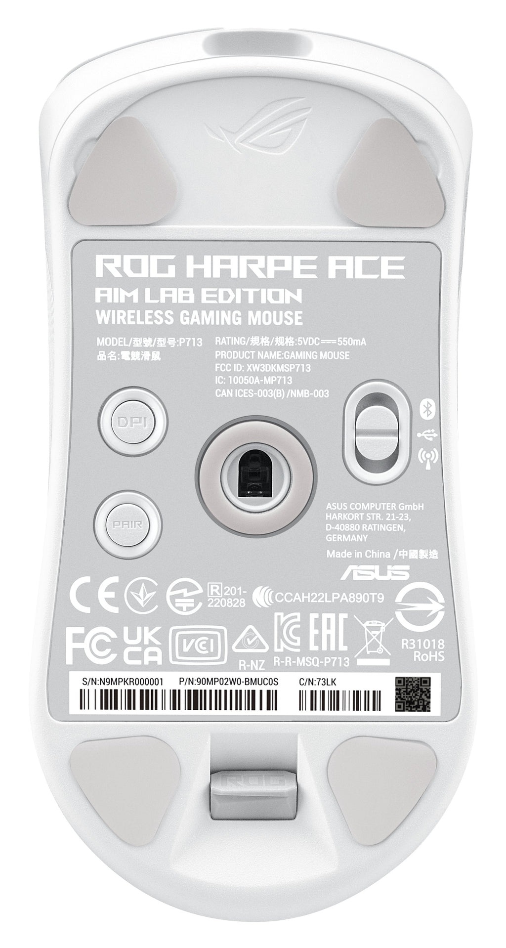 ASUS ROG Harpe Ace Aim Lab Edition, Ambidextro, Opto-mecánica, RF Wireless + Bluetooth + USB Type-C, 36000 DPI, Blanco