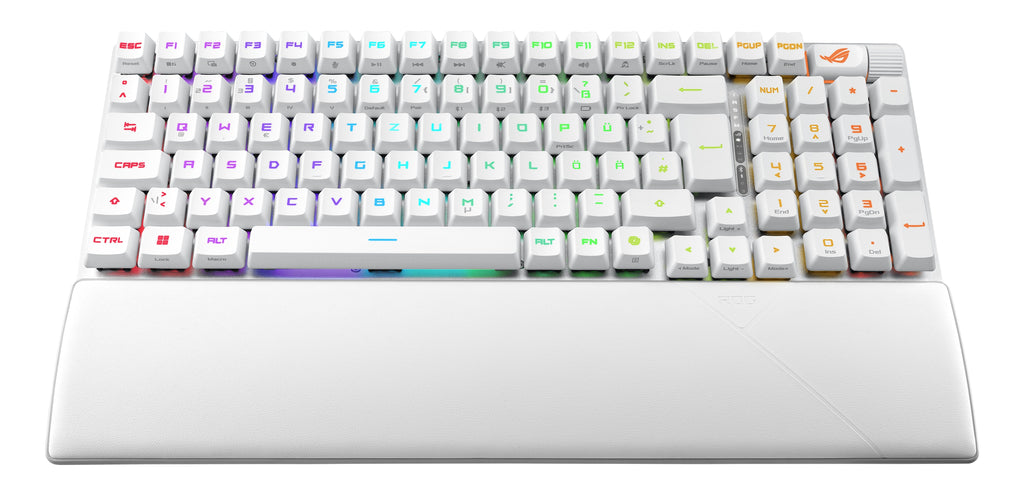 ASUS ROG Strix Scope II 96 RX Wireless, 96%, Inalámbrico y alámbrico, USB + RF Wireless + Bluetooth, Switch de tecla óptico, LED RGB, Blanco