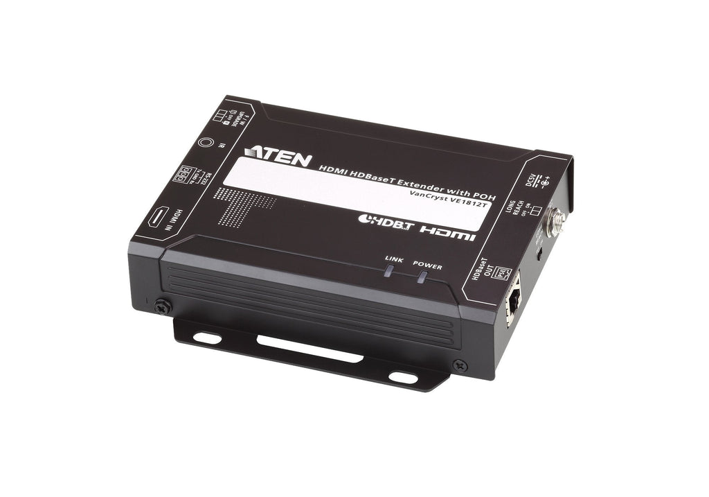 El VE1812T incorpora Power over HDBaseT (POH) que envía alimentación de transmisión a recepción a través de cable Cat 5e/6/6a sin suministro eléctrico adicional. El VE1812T admite pasarela de señalización por RS-232 e infrarrojos, lo que le permite controlar el dispositivo HDMI de origen desde la unidad receptora (VE1812R), además de acceder al dispositivo de visualización HDMI desde la unidad transmisora (VE1812T). Las señales de infrarrojos también se pueden extender en ambas direcciones.