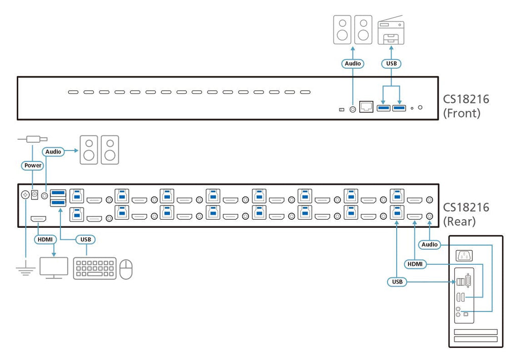 El switch KVM HDMI 4K USB 3.0 de 16 puertos CS18216 de ATEN permite acceder y controlar eficazmente hasta 16 ordenadores mediante HDMI desde un único teclado o ratón USB o una consola de monitorización con puerto HDMI. El CS18216 admite una alta calidad de vídeo de hasta DCI 4K (4096 x 2160 a 60 Hz) y muestra imágenes nítidas.