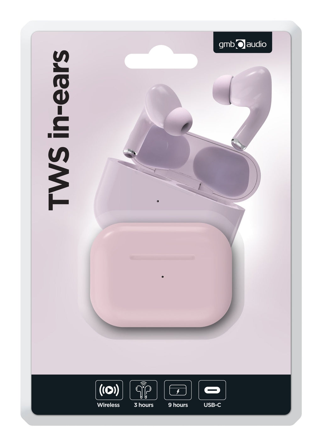 Gembird GMB Audio TWS-03-P auricular y casco Auriculares True Wireless Stereo (TWS) Dentro de oído Llamadas/Música USB Tipo C Bluetooth Rosa