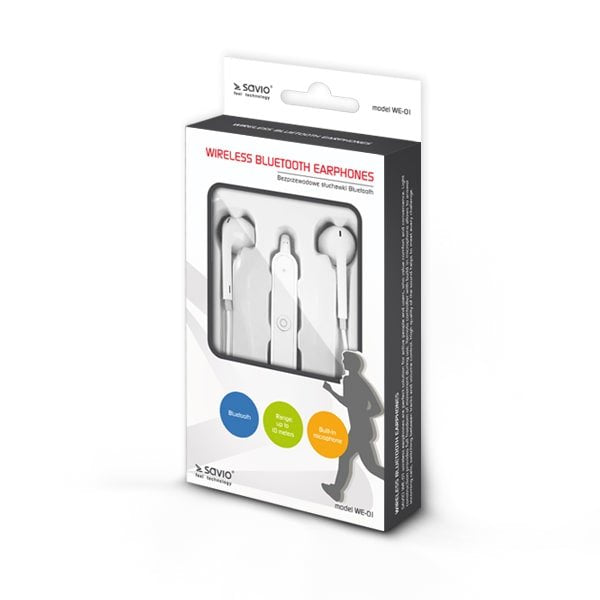 Savio WE-01 auricular y casco Auriculares Inalámbrico Dentro de oído Llamadas/Música Bluetooth Blanco