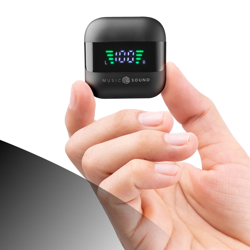 Los auriculares Bluetooth SPARK de Music Sound son el accesorio perfecto para quien desea una reproducción musical inalámbrica de alta calidad combinada con funciones avanzadas. Gracias a la práctica pantalla LED integrada, puedes mantener siempre bajo control el estado de carga de la funda, evitando interrupciones durante la escucha. Con una autonomía de hasta 30 horas, podrás disfrutar de tu lista de reproducción favorita sin preocuparte de tener que recargar con frecuencia. La conexión automática simplifica el emparejamiento con tus dispositivos Bluetooth, mientras que los controles táctiles en los auriculares te permiten gestionar fácilmente la música y las llamadas. Compactos y portátiles, los auriculares SPARK están siempre listos para seguirte a donde vayas, ofreciéndote el máximo confort y practicidad.