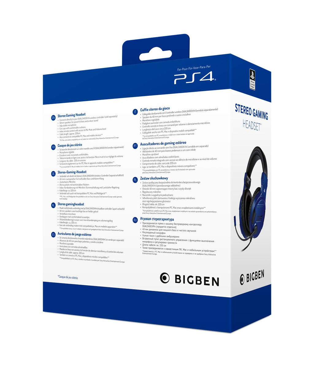 Bigben Interactive PS4OFHEADSETV3G, Alámbrico, Juego, 270 g, Auriculares, Azul