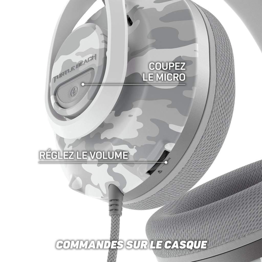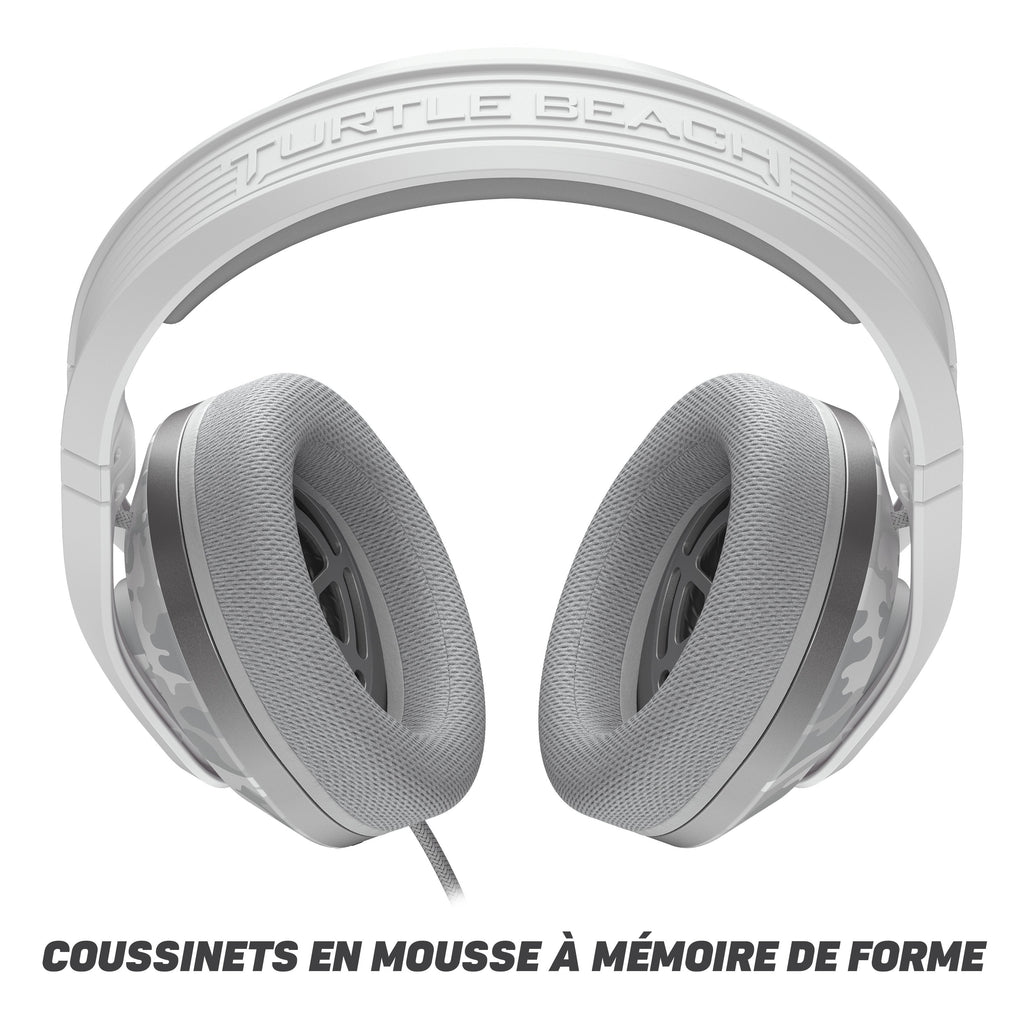 Écoutez le son de la révolution de l'audio de gaming avec le casque filaire gaming Turtle Beach® Recon™ 500, qui donne aux joueurs de compétition l'avantage nécessaire pour dominer les classements. Ce casque révolutionnaire est équipé des haut-parleurs doubles 60 mm Eclipse™, les premiers du genre, qui vous apportent une qualité sonore incomparable à toutes les fréquences grâce à leurs coussinets d'oreilles injectés d'un composé de bois et conçus pour vous garantir un son parfait. En plus de cela, pour un son encore plus immersif, le Recon 500 est compatible avec les technologies d'audio spatial comme Windows Sonic, Dolby Atmos et DTS Headphone: X. Contactez vos coéquipiers (ou narguez vos adversaires) avec le microphone amovible antibruit TruSpeak™, qui vous garantit un chat limpide de qualité professionnelle. Un confort de jeu total, même pendant vos sessions marathons, grâce à des coussinets en mousse à mémoire de forme et un arceau renforcé en métal léger et robuste. Sa simple connexion 3,5 mm fonctionne parfaitement avec Xbox, PlayStation®, Nintendo Switch, les appareils mobiles et PC. De plus, le câble séparateur inclus convient à merveille aux configurations PC de bureau gaming pour que votre Recon™ 500 soit toujours prêt au combat sans avoir besoin de piles.