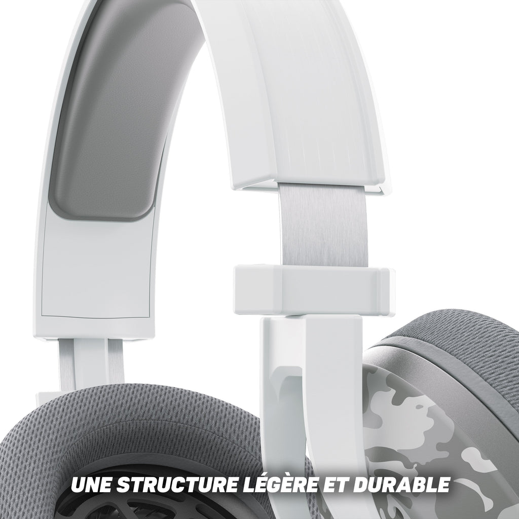 L'arceau renforcé en métal ajustable est souple, conçu pour durer et d'une légèreté adaptée aux plus longues sessions de jeu.
