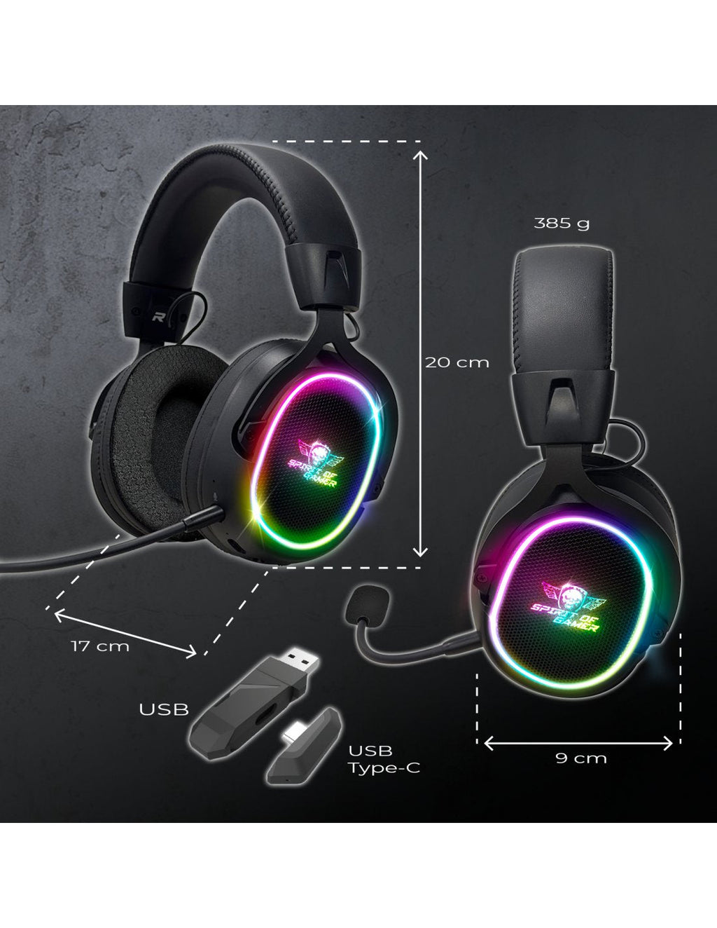 Spirit of Gamer XPERT H1200 WIRELESS, Inalámbrico y alámbrico, Juego, 20 - 20000 Hz, 385 g, Auriculares, Negro