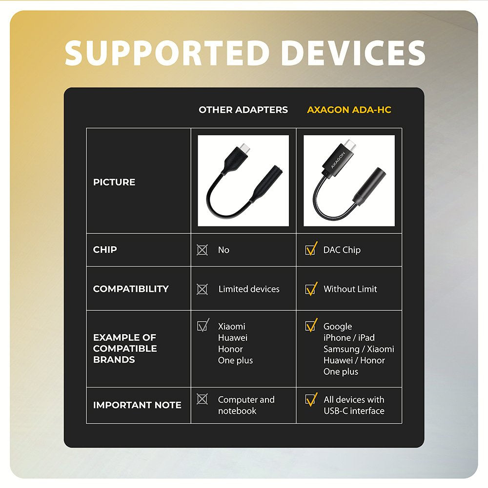 Axagon ADA-HC, 3,5mm, Hembra, USB Tipo C, Macho, 0,1 m, Negro