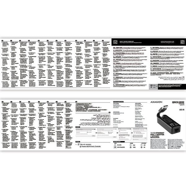 Axagon ADE-XR, Alámbrico, USB, Ethernet, 100 Mbit/s, Negro
