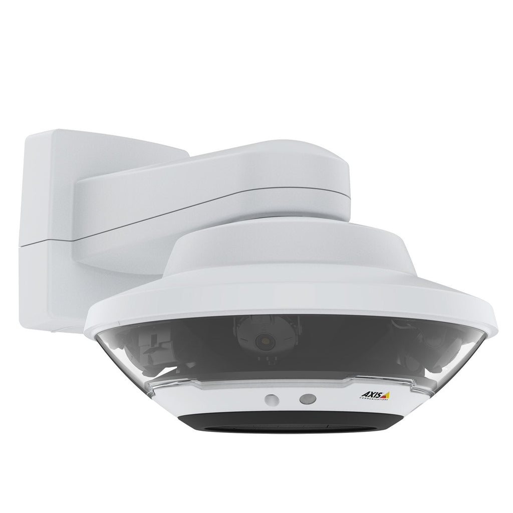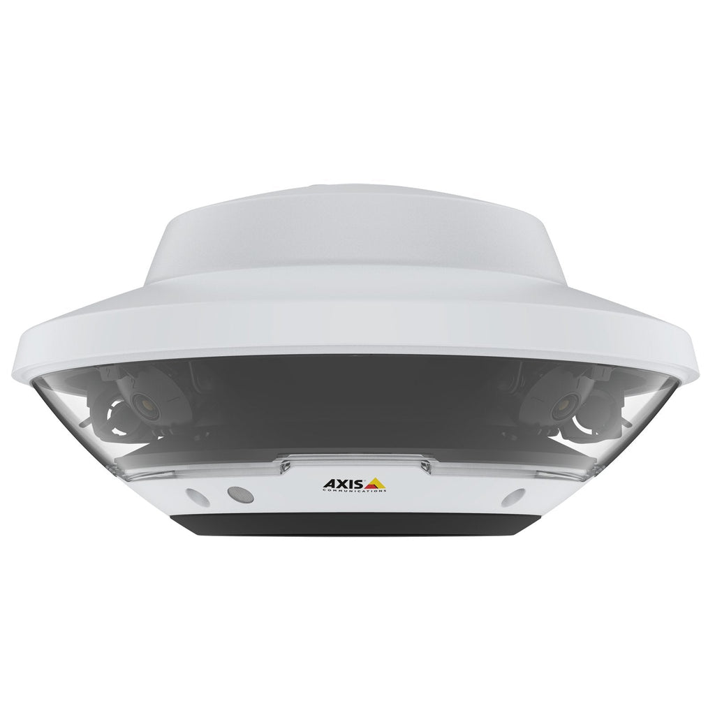 - 4 sensores de 5 MP, resolución total de total 20 MP; Cámara de 360° con control PTZ de un solo clic; Detección de audio direccional Incluido; Objetivos intercambiables e inclinables; Requiere una cámara de la serie AXIS Q61 o de la serie AXIS Q63