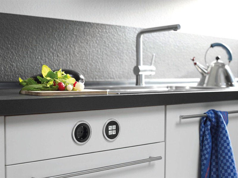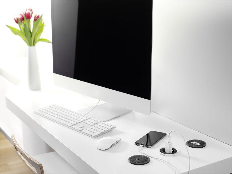 Ya sea en la oficina, la cocina, salones o en casa: individualmente o en combinación, los embellecedores pueden seleccionarse en distintos colores y cambiarse. Opcionalmente, para PIX se suministra una tapa sofisticada giratoria, que protege contra el polvo y la suciedad y que también puede ampliarse posteriormente. Con una forma redonda y plana y su aspecto minimalista, el PIX satisface todos los requisitos en cuanto a diseño.