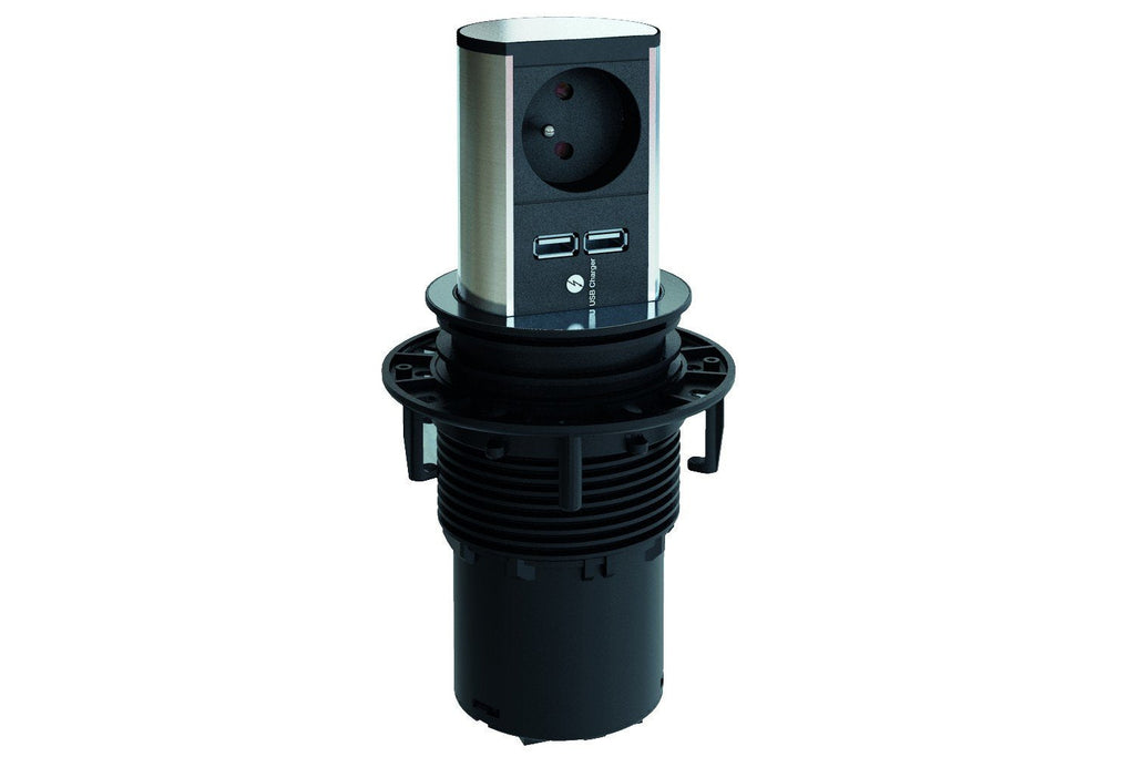 ELEVATOR se adapta de forma óptima a cualquier entorno. Con 79 mm de diámetro, ELEVATOR resulta muy adecuado cuando se trata de integrar conexiones de corriente y datos en el espacio más pequeño. ELEVATOR se extiende mediante pulsación con los dedos y de este modo también se encastra de nuevo.