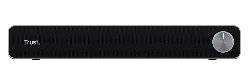 Suba fácilmente el volumen con la gran perilla de control iluminada en la parte frontal de la barra de sonido.