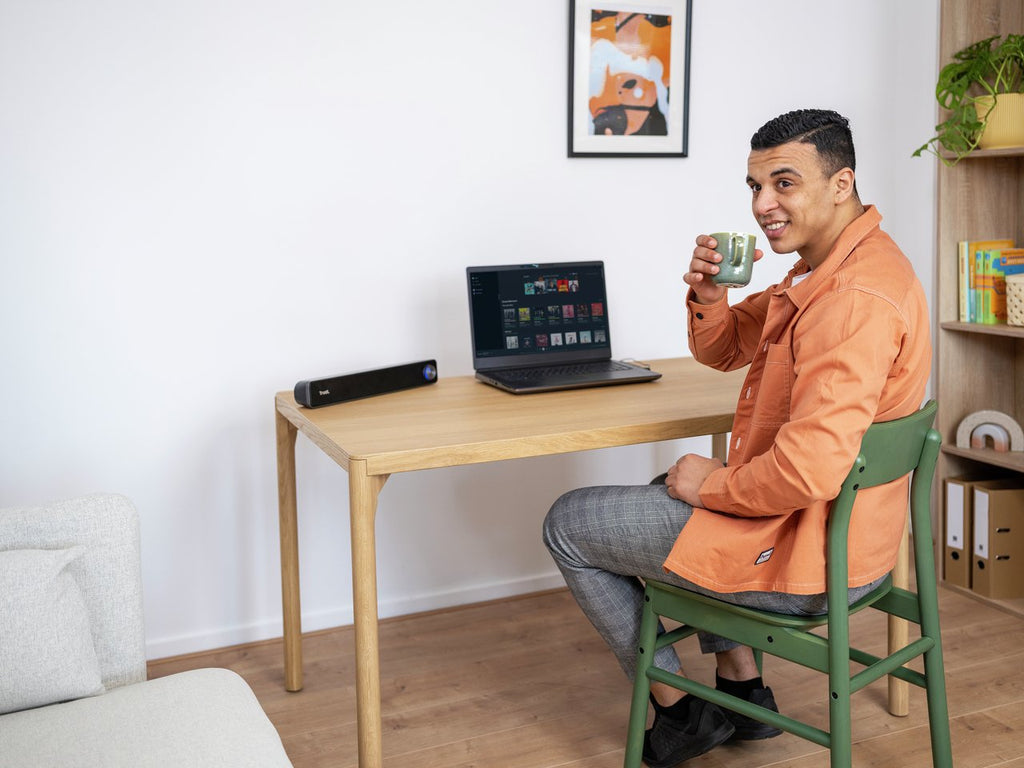 - Forma horizontal que ahorra espacio y encaja debajo de cualquier monitor de ordenador.