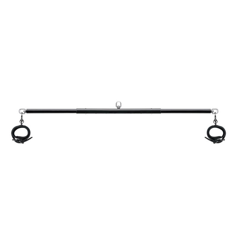 Limita los movimientos de tu sumiso o sumisa con esta fuerte barra separadora de metal con esposas para los tobillos. Esta barra se puede montar en el techo usando el anillo en forma de D en la parte superior de la barra. La barra en sí se puede ajustar en longitud de 70 cm a 90 cm. Las esposas también se pueden ajustar fácilmente para un ajuste perfecto. Estas están sujetas a la barra con cierres de clip, por lo que puede separarlos y usarlas por separado.