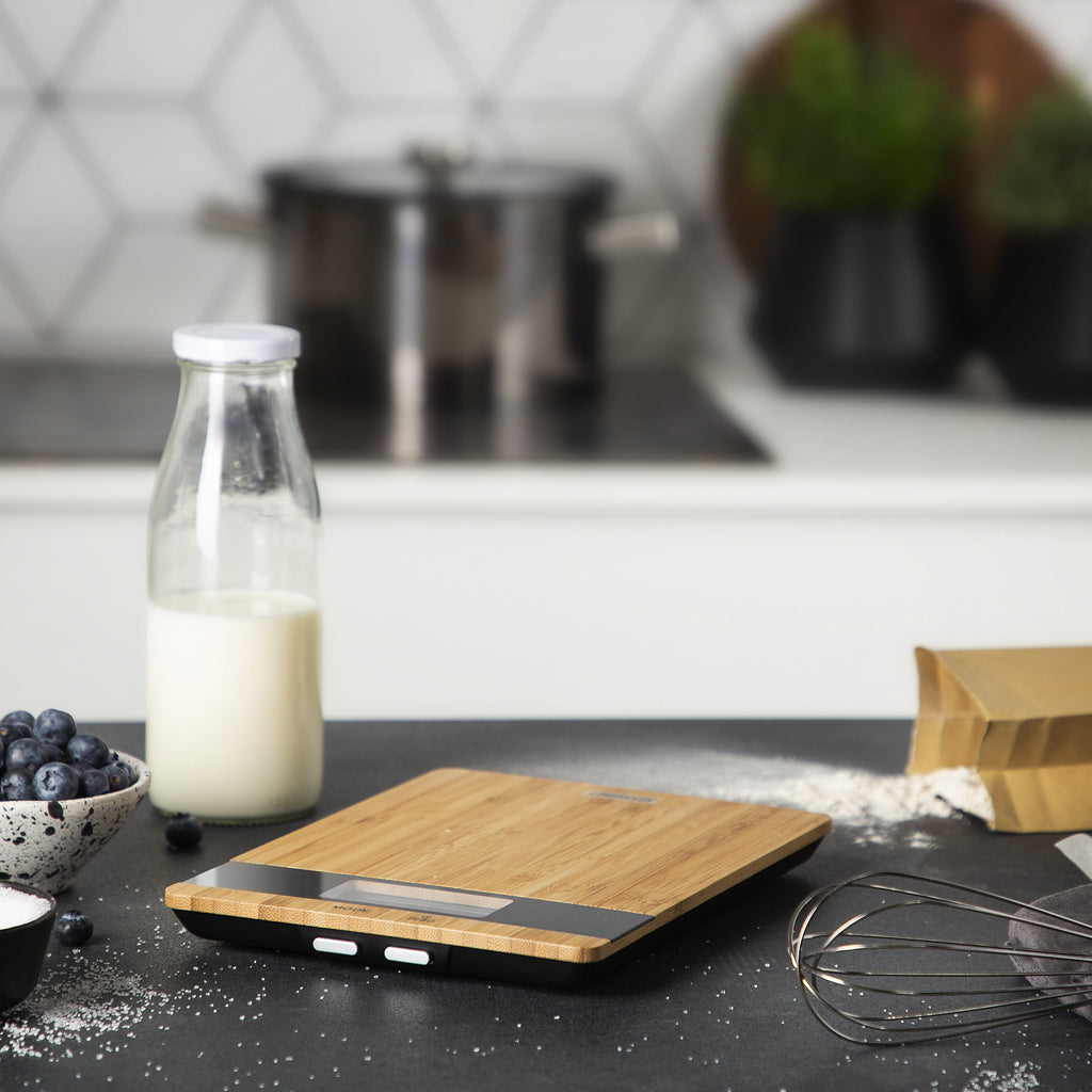 Si le gusta la repostería, tiene que seguir las recetas en la cocina y pesar los ingredientes es importante para conseguir los resultados más deliciosos. La báscula de cocina Princess pesa hasta 5 kg con una precisión de un gramo. Además, su diseño también es bastante especial. Gracia a su elegante bambú, esta báscula es imprescindible en la cocina. Cocinar y hornear no solo tiene que ser práctico, también puede ser bonito.