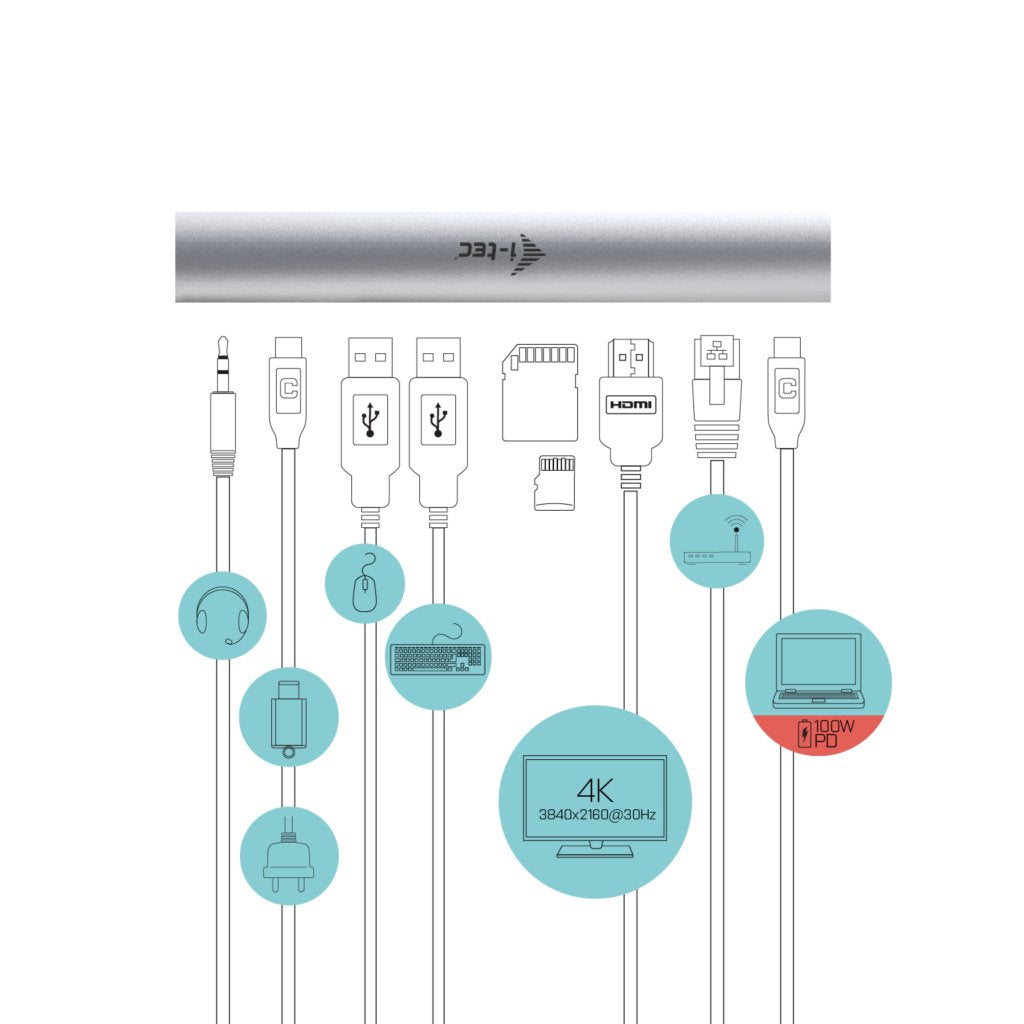 i-tec Metal C31METALDOCKPADPD base para portátil y replicador de puertos Alámbrico USB 3.2 Gen 1 (3.1 Gen 1) Type-C Gris