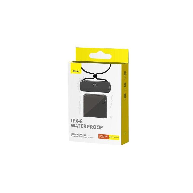 Baseus Aquaglide Universal Waterproof Case Ipx8 Up To 7.2 Inch Phone, Black/ Transparent (Bs-Pc029)