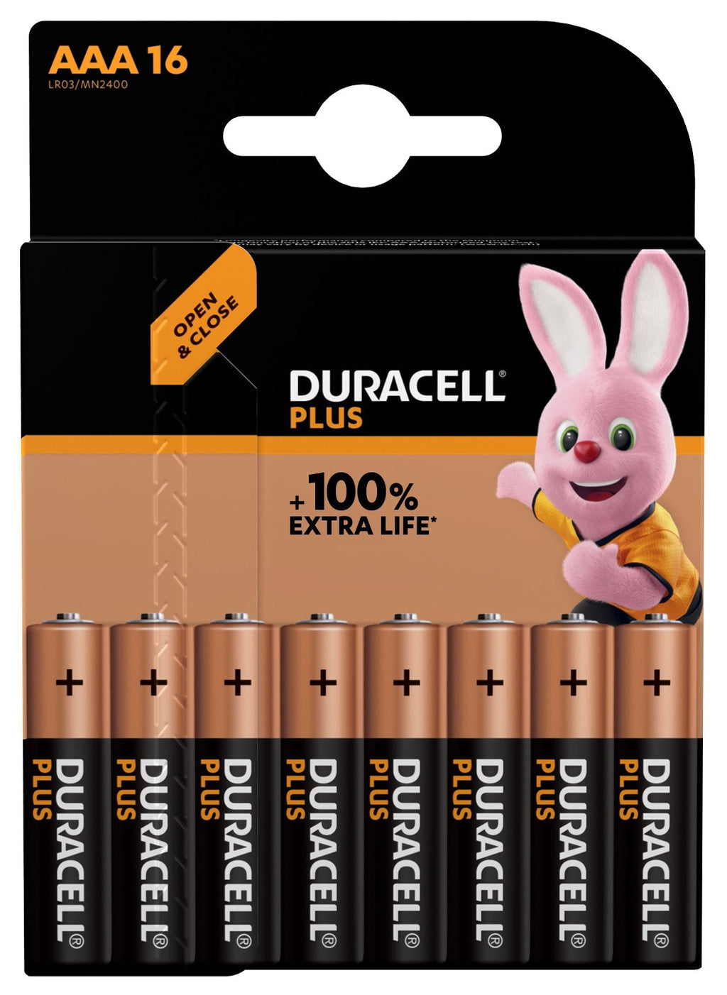 Duracell Plus 100, Batería de un solo uso, AAA, Alcalino, 1,5 V, 16 pieza(s), Multicolor