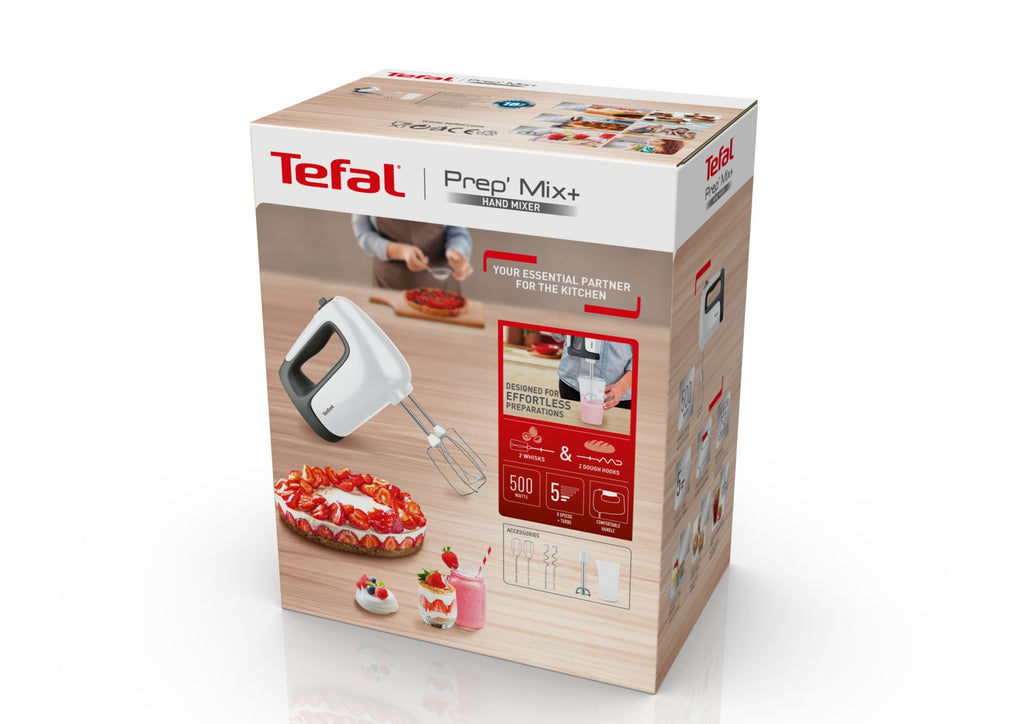 Tefal Prep'Mix HT4621, Batidora de mano, Blanco, Mezcla, Botones, Giratorio, Metal, 500 W