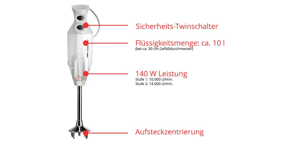 ESGE M 122 De Luxe, Batidora de inmersión, 0,6 L, 1,65 m, 140 W, Blanco