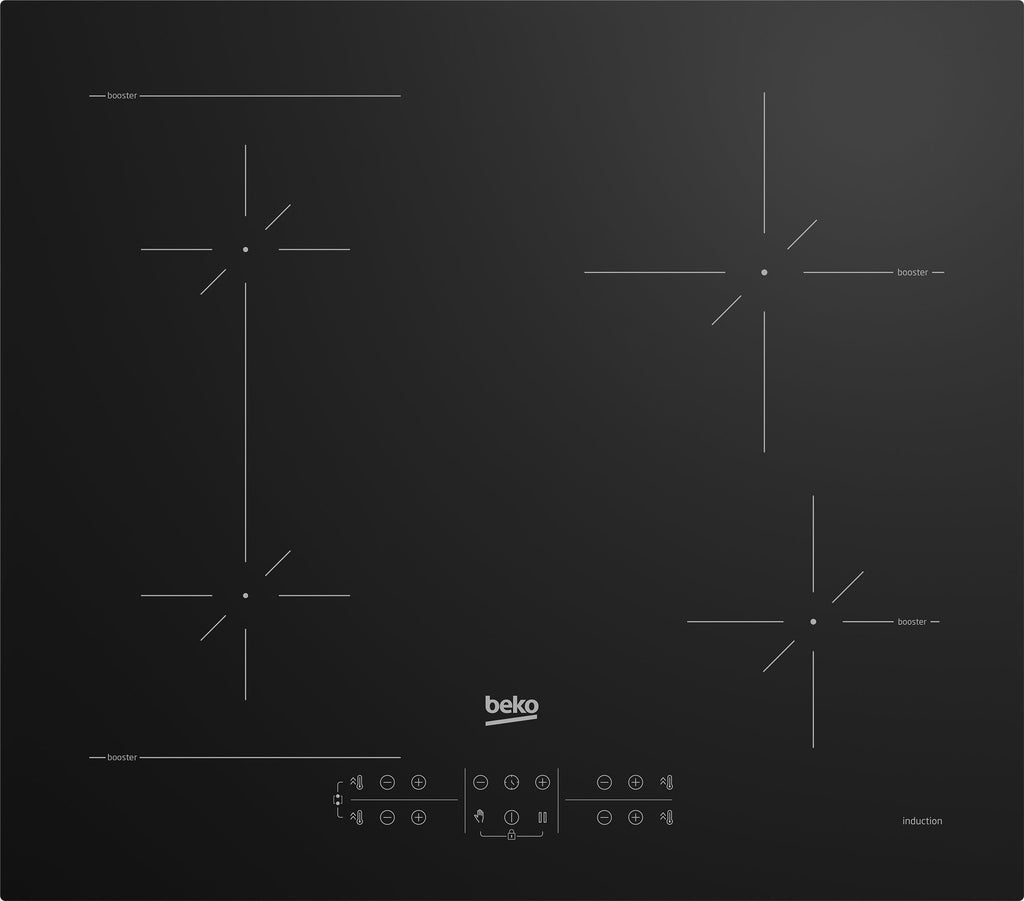 Beko HII64200SFMT, Negro, Integrado, 59 cm, Con placa de inducción, Vidrio, 4 zona(s)