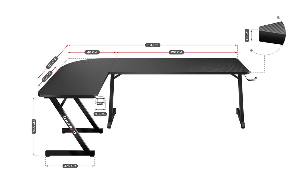 - Grosor del material del tablero del escritorio: 1,5 cm